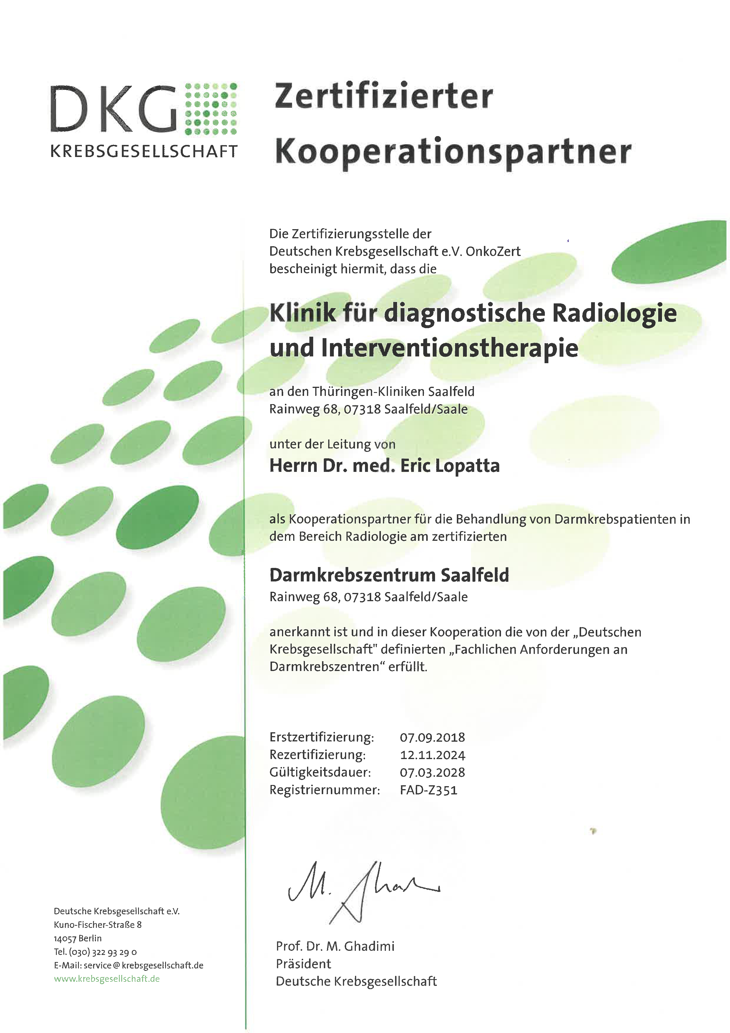 - Q2-Zertifikat MRT Herz der AG Herz der Deutschen Röntgengesellschaft (Chefarzt Dr. Lopatta)