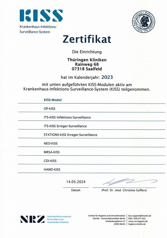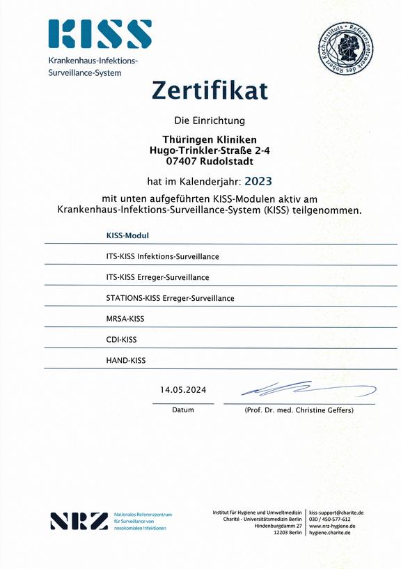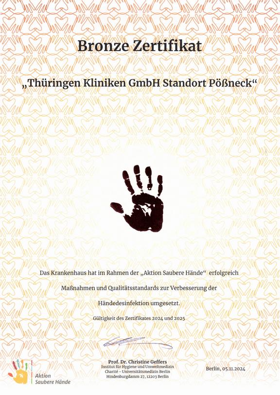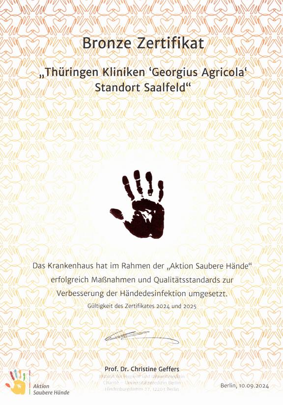 Die Thüringen-Kliniken haben an allen Standorten sowohl Hygienebeauftragte Ärzte sowie auch Hygienebeauftragte in der Pflege mit vorgeschriebener Ausbildung. Sie sind das Bindeglied zu den Hygienefachschwestern und ermöglichen einen kurzen Dienstweg und eine gute Kommunikation in die einzelnen Bereiche.