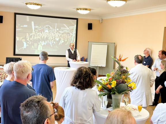 Gemeinsam mit Kollegen aus den Thüringen-Kliniken verabschiedete Geschäftsführer Dr. med. Thomas Krönert seinen langjährigen Chefarztkollegen Dr. med. Uwe Petereit in den Ruhestand und bedankte sich für die langjährige Zusammenarbeit auf höchstem Niveau.