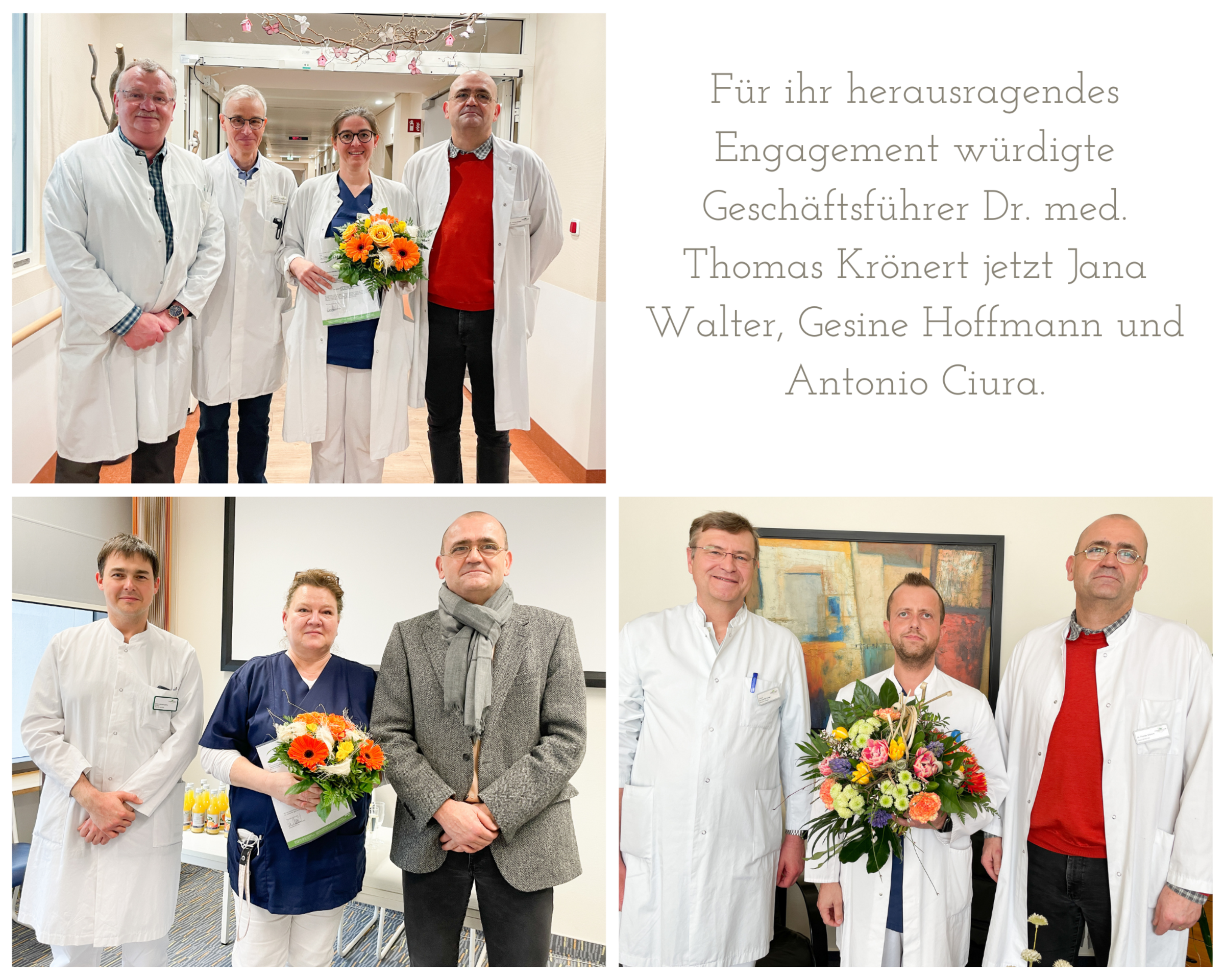 Für ihr herausragendes Engagement würdigte Geschäftsführer Dr. med. Thomas Krönert jetzt zwei Ärztinnen und einen Arzt.