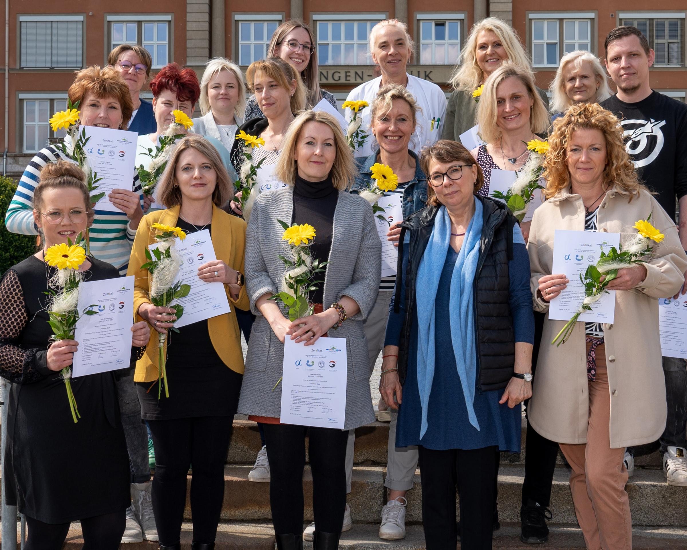 Im Juni 2022 startete der "Palliative Care"-Kurs in den Thüringen-Kliniken. Neun interne und drei externe Pflegefachkräfte stellten sich dieser verantwortungsvollen Herausforderung. Nach vier Blockwochen schlossen die teilnehmenden Personen heute mit dem Zertifikat „Basiscurriculum Palliative Care“ nach M. Kern, M. Müller und K. Aurnhammer ab.