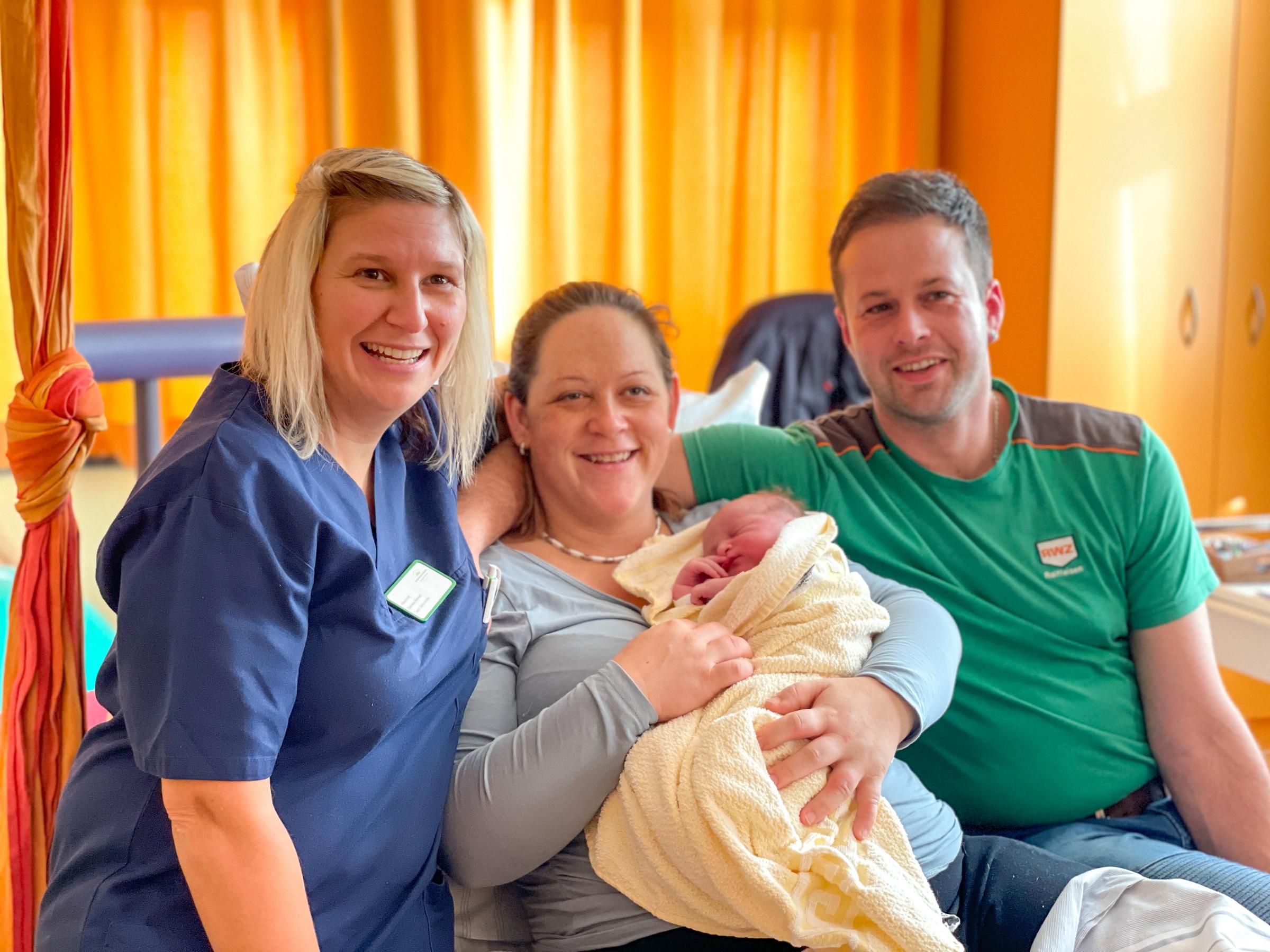 Der kleine Tim erblickte als erstes Baby im Neuen Jahr um 11.46 Uhr das Licht der Welt. Mama Jenny, Papa Michael und der fünfjährige Bruder Lukas freuen sich über den kleinen neuen Erdenbürger. Die Familie kommt aus Weira und war ganz überrascht, dass sich der kleine Tim bereits am ersten Tag im neuen Jahr auf den Weg gemacht hat, da der eigentliche Geburtstermin erst in zwei Wochen errechnet war.