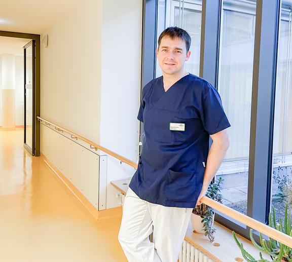 Der 34-jährige Viktor Ruzicka ist gebürtiger Tscheche und hat Medizin an der Universität in Brno (Brünn) studiert. Sein praktisches Jahr innerhalb des Medizinstudiums absolvierte er in Halle und sammelte danach erste klinische Erfahrungen an der „Klinik Bavaria“ in Kreischa. Seit 2014 war er als Assistenzarzt an der Paracelsus-Klinik in Adorf tätig, schloss dort seine Weiterbildung zum Facharzt für Innere Medizin ab. Anschließend folgte eine Weiterbildung in den Fachgebieten Geriatrie, Palliativmedizin sowie Notfallmedizin. Vor zweieinhalb Jahren übernahm MUDr. Ruzicka die Leitung der Klinik für Innere Medizin, Geriatrie und Palliativmedizin in Adorf.