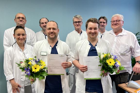 Zu den ersten Gratulanten gehörten neben dem Geschäftsführer und dem Chefarzt die Oberarztkolleginnen und -kollegen der Klinik.