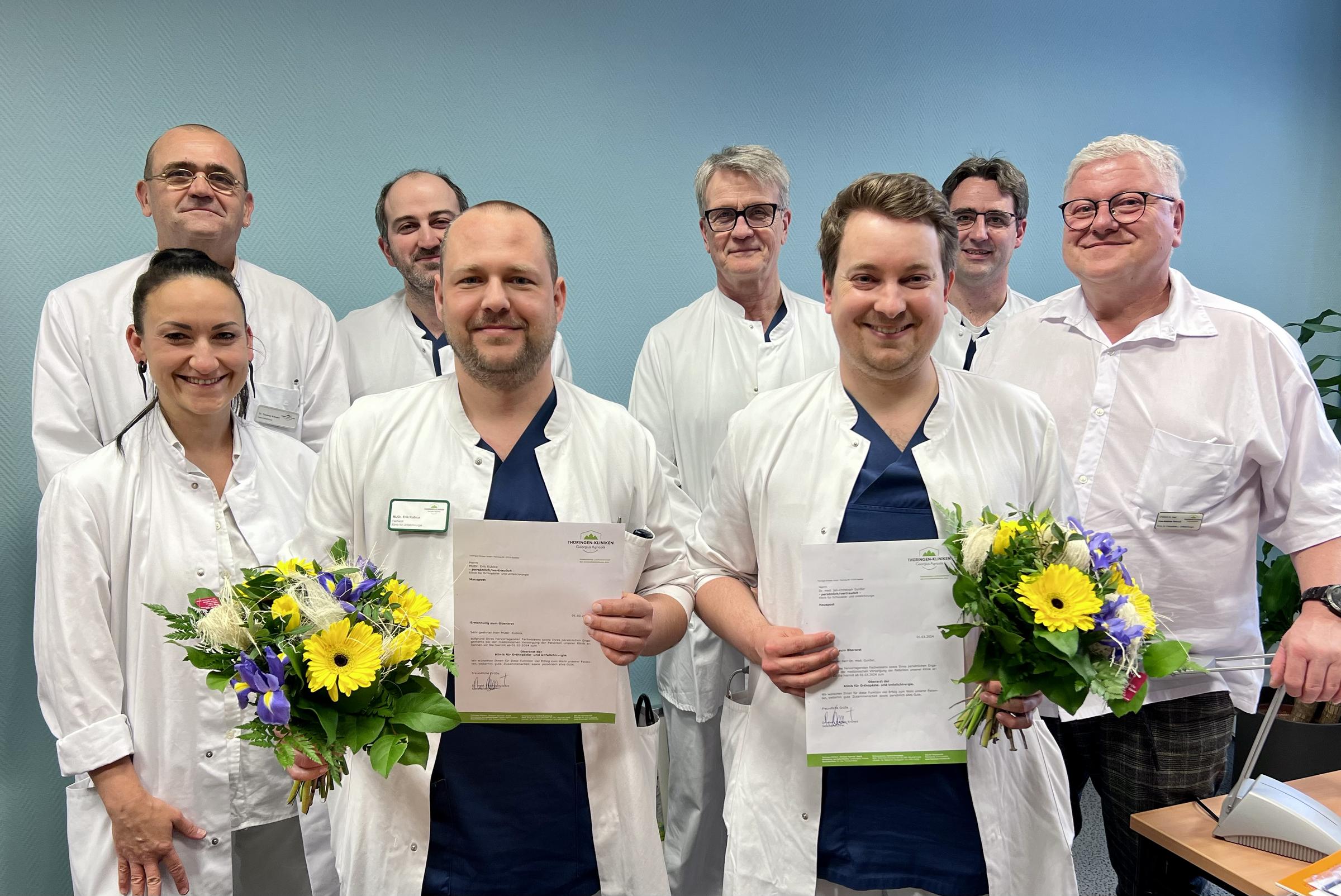 Auf Empfehlung von Chefarzt Dr. med. Uwe Petereit ernannte Geschäftsführer Dr. med. Thomas Krönert die beiden neuen Oberärzte der Klinik für Orthopädie und Unfallchirurgie.