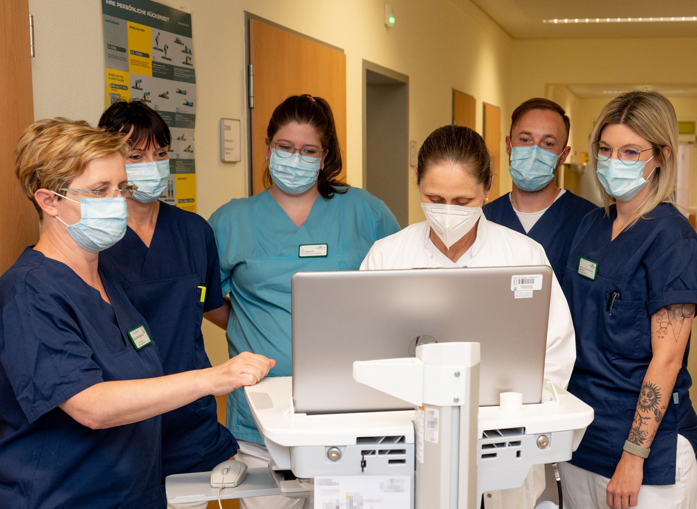 „Wir freuen uns als Team, wieder gemeinsam auf unserer Station zu arbeiten“, fasste die Stationsleiterin, Schwester Anja, den Beginn am heutigen Dienstag auf der angestammten Station im zweiten Obergeschoss zusammen. In den zurückliegenden Monaten waren die Schwestern und Pfleger pandemiebedingt in anderen Klinikbereichen im Einsatz und haben dort die Wirbelsäulenpatienten kontinuierlich betreut.