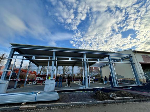 Der Neubau der Rettungswache am Klinikstandort Pößneck nimmt Form an: Heute feierten die Thüringen-Kliniken gemeinsam mit den bauausführenden Firmen und Partnern Richtfest.