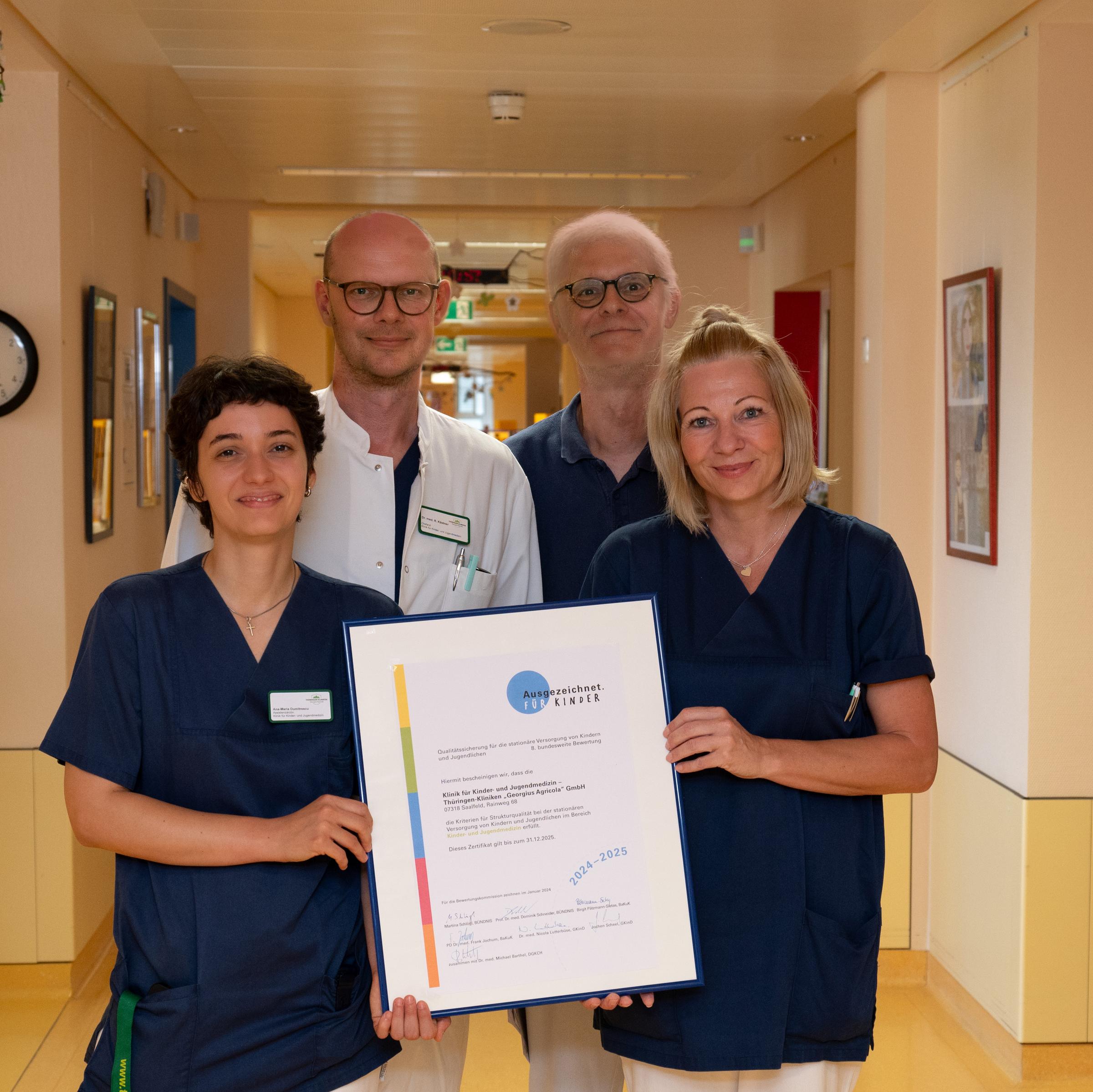 Es ist das große Anliegen aller in der Kinder- und Jugendmedizin Tätigen, die Qualität der stationären Behandlung von Kindern und Jugendlichen in Deutschland zu sichern und möglichst noch weiter zu verbessern. Aus diesem Grund haben die Gesellschaft der Kinderkrankenhäuser und Kinderabteilungen in Deutschland e.V. (GKinD), die Bundesarbeitsgemeinschaft Kind und Krankenhaus (BaKuK) und das Bündnis für Kinder- und Jugendgesundheit (BÜNDNIS (vormals DAKJ) zusammen mit der Deutschen Gesellschaft für Kinderchirurgie (DGKCH) 2009 das Gütesiegel "Ausgezeichnet. FÜR KINDER" entwickelt. Die Erfüllung der geforderten Qualitätskriterien wurde von einer multiprofessionellen siebenköpfigen Bewertungskommission überprüft.